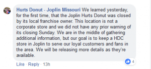 Hurts Donut Corporate Office Was Not Notified Of Joplin Closure