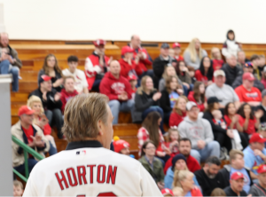 The Cardinal group appeared before a large crowd of fans and media at Missouri Southern State University’s Robert Ellis Young Gymnasium. The event was emceed by the always loquacious Ricky Horton (pictured above left, waving to fans).
