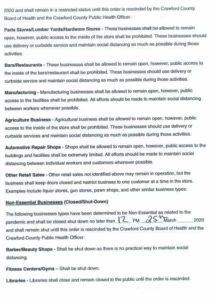 Crawford County Kansas is closing some non-essential businesses and putting restrictions on others due to coronavirus concerns.