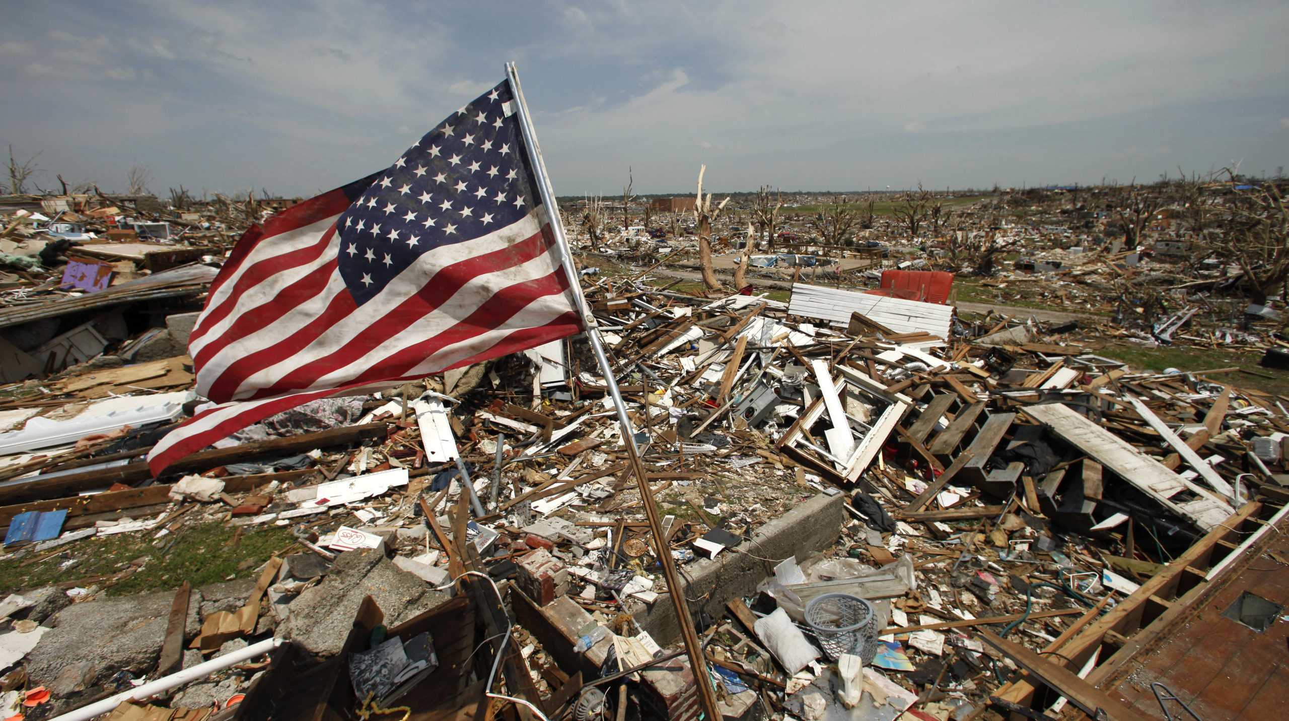 Damage is seen in a devastated Joplin, Mo. neighborhood Sunday, May 29, 2011. An EF-5 tornado tore through much of the city Sunday, damaging a hospital and hundreds of homes and businesses and killing at least 156 people. (AP Photo/Charlie Riedel)