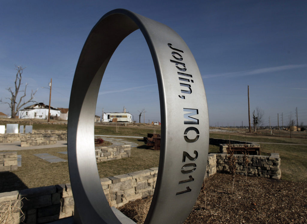 FILE – In this May 30, 2011, file photo damage is seen in a devastated Joplin (AP Photo/Charlie Riedel, File)