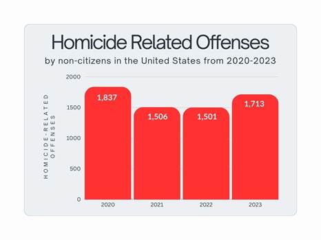 In that same amount of time, the number of homicide-related offenses have remained high with an average of more than 1,600 per year from 2020 to 2023, and convictions for domestic violence, battery, and assault have increased during this period. A 2023 report from U.S. Immigrations and Customs Enforcement also found that nearly half of all illegal immigrants arrested here in the U.S. have multiple prior criminal charges and convictions.