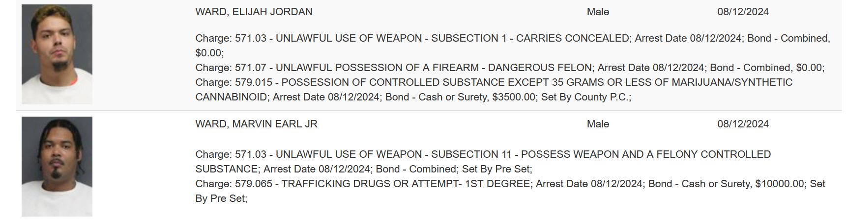 Elijah Ward was charged with Possession of a Controlled Substance, Unlawful Possession of a Firearm and Unlawful Use of a Weapon.