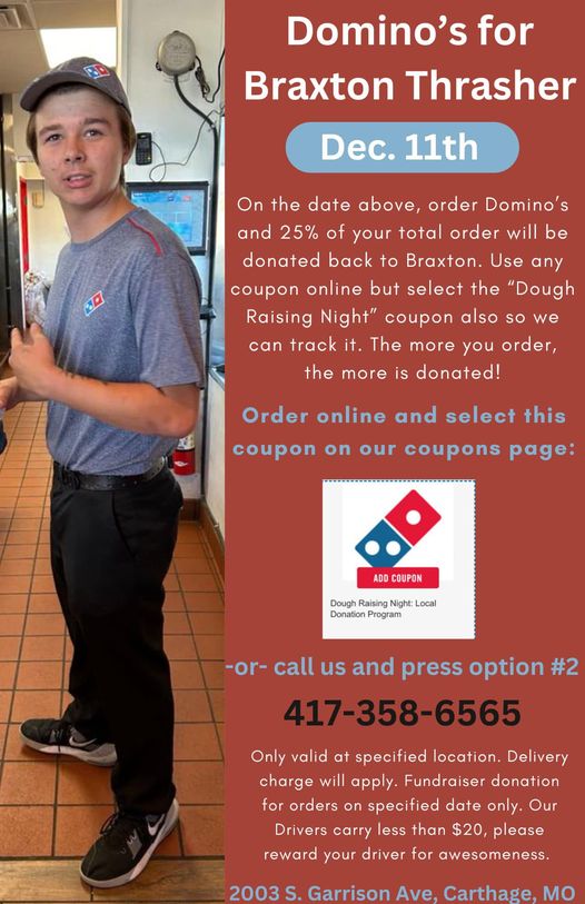 His place of employment, Domino’s, is doing a fundraiser for him next week.