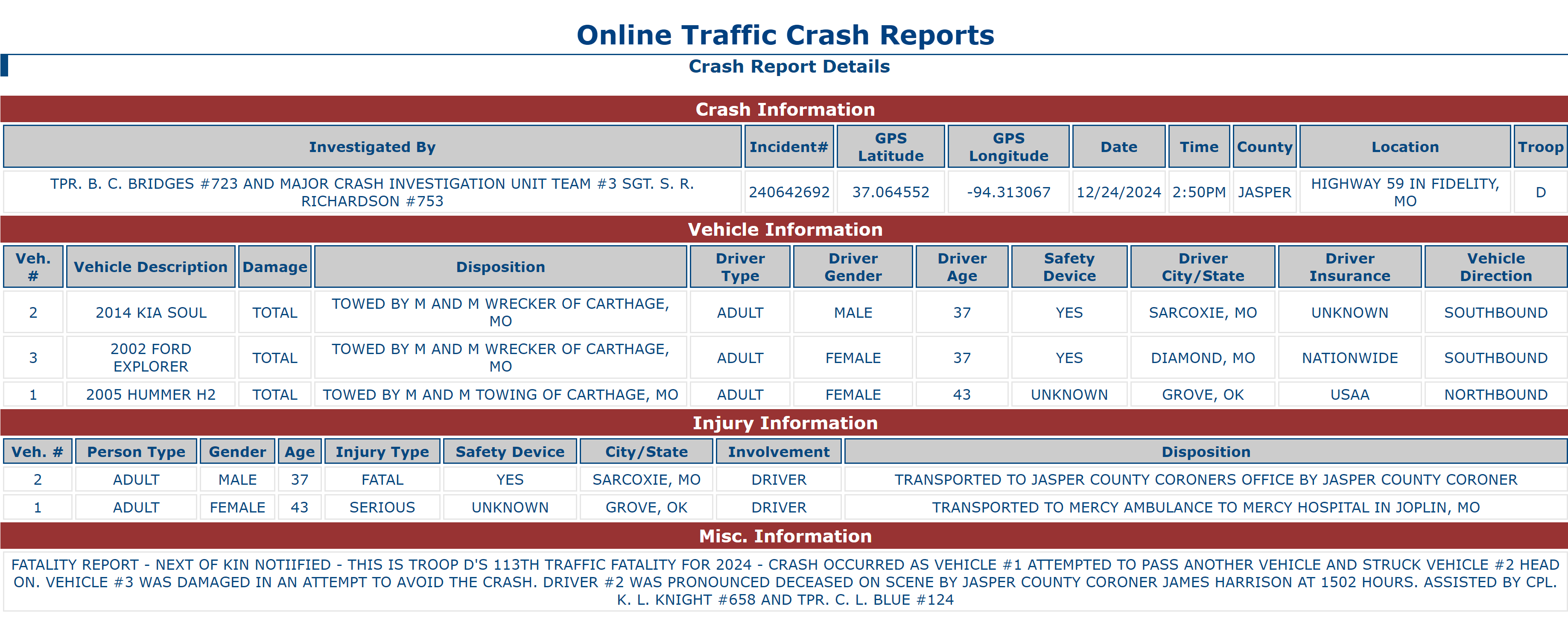 A 37-year-old man from Sarcoxie driving that small SUV was pronounced dead at the scene. The Missouri State Highway Patrol has not made his name public.
