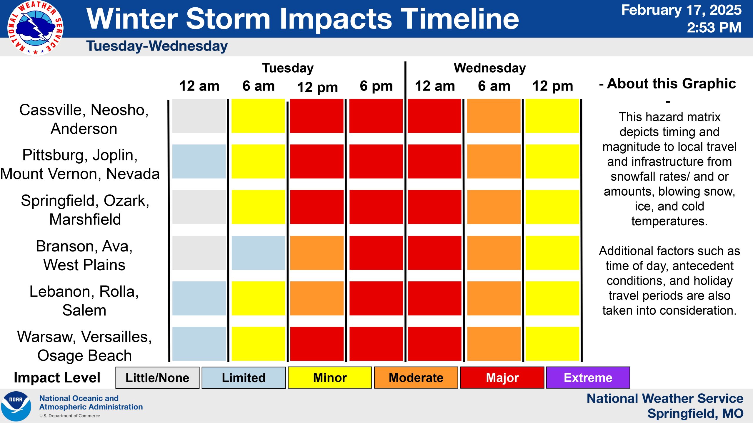 commute Tuesday. With the cold conditions and expected snowfall amounts travel impacts will continue beyond Wednesday morning after the snow ends.