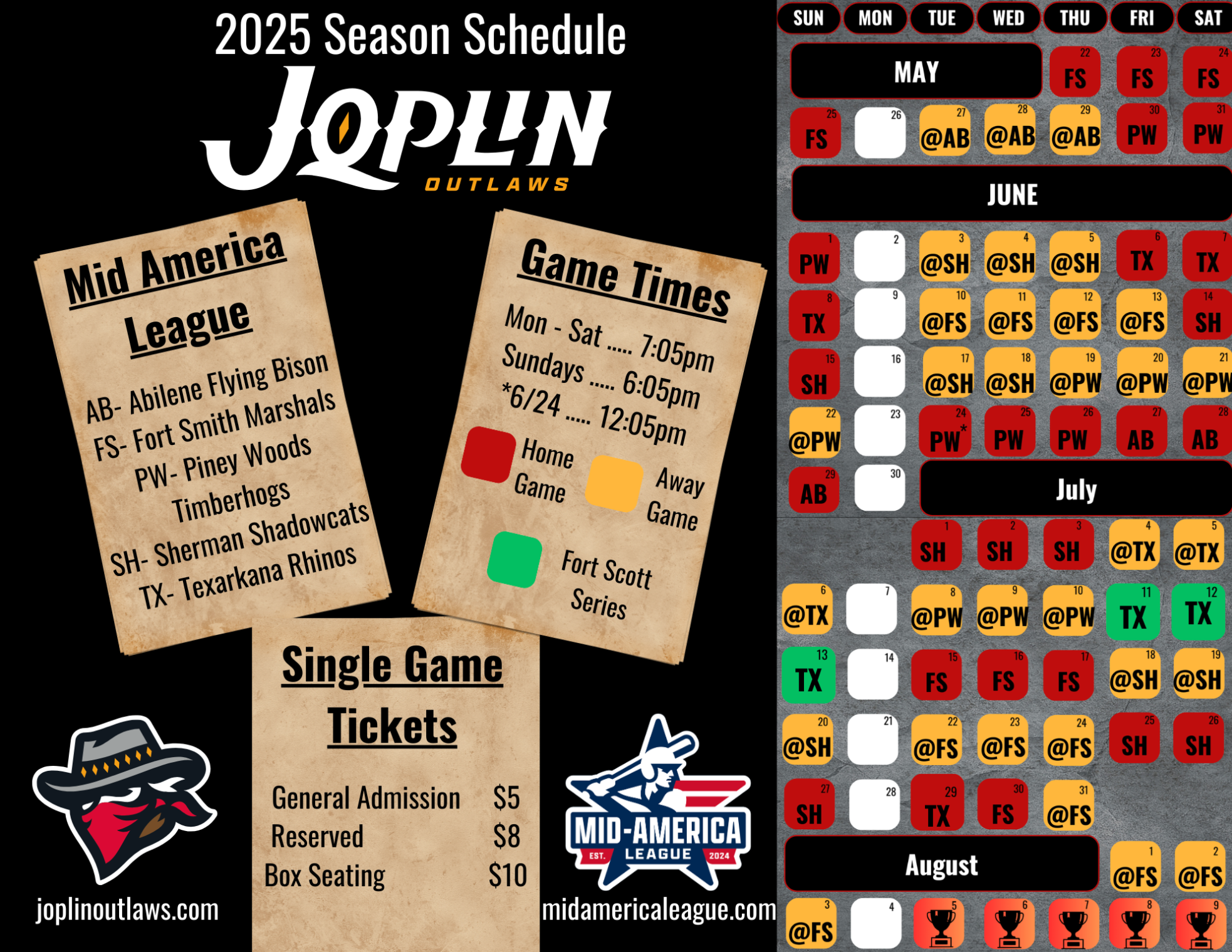 The Outlaws will be in action for much of the summer, so make your plans to enjoy some baseball and many specials
